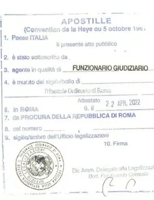 Sworn translations in Italy are certified by an Italian court and then legalized with an Apostille stamp from the Public Prosecutor’s Office.