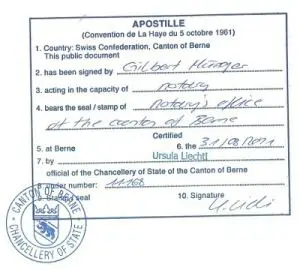 We obtain Apostilles for all Swiss birth, death and marriage certificates. Apostilles can be applied to original certificates issued by Swiss Cantons or to a notarized copy (which can often be made from a good-quality scan).