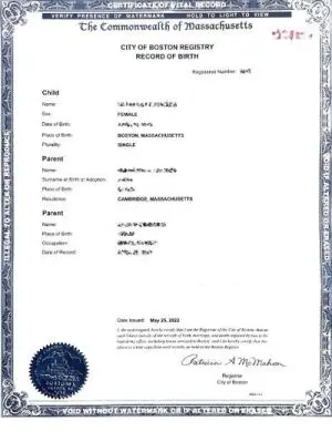 Certified translations of Massachusetts vital records